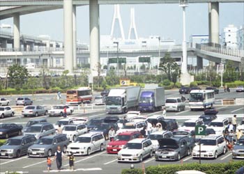 | 5月6日(日) GW最終日の今日、大黒P.Aにて、SWATさんの集まりによる、「SWATオートサロン」のオフミがありました。当、お客様の情報により、急遽お祭り男byRは常連さんを交えて、大黒P.Aに向かいました! 最初、湾岸線を走行中、「大黒P.A閉鎖中」との看板に、自分は焦りを感じました。不安をよぎりながら、大黒P.Aに着くと、案の定閉鎖中で、入り口には、パトカーにふさがれていました・・・。なんとか、お巡りさんに交渉したところ、中に入れてくましたが、P.A周辺は「暴走族」の音でだいぶにぎやかでした! 中に入り、ちょっと早めに着きすぎましたが、もうすでにSWATメンバーの方はだいぶ到着されていて、けっこうな台数でした・・・。 |
