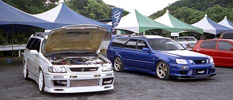 午後からお祭り男 by Rは、猛暑の為「オーバーヒート」寸前だったのに、皆さんは気合十分!!って感じでした・・・。やはり、車が好きな方は、暑さなんて関係ない!!と実感しました。今回は、一日だけのイベントでしたが、こういった一般ユーザー様の車をたくさん集めたイベントもおもしろいなぁ〜と思います。またこういったイベントがあれば、DOLPHINも参加したいと思いま〜す!P.S イベント終了後、Ti サーキットより、インターチェンジまで一緒だった、SWATメンバーの方、インター手前で「クラクション」いただき、ありがとうございました♪♪。次は、「ワゴン・スーパーカーニバル 2001」でお会いしましょう♪舞州スポーツアイランドで、サンオイル塗ってお待ちしてま〜す!(笑) ↓の写真はお祭り男 by Rの独断と偏見で撮った「オッ!スゲーよ!」の写真載せてみました。 |